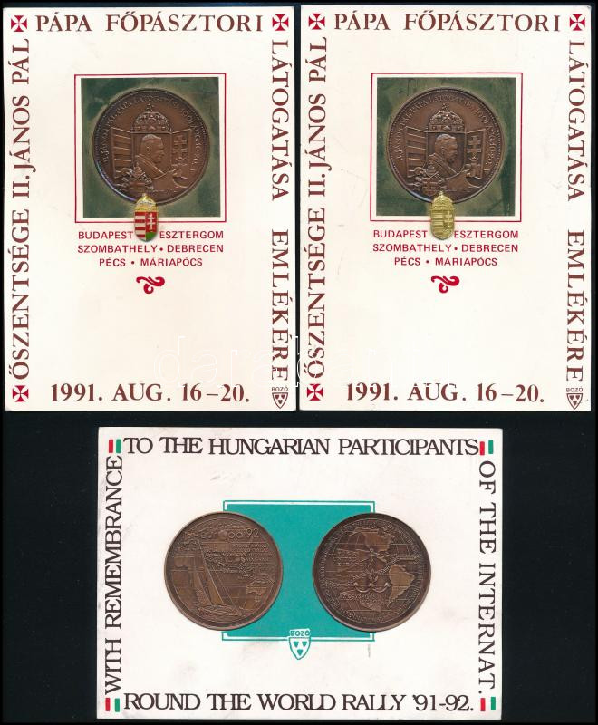 1992 Nemzetközi Vitorlásverseny emléklap plakettekkel 5 db + II. Pál pápa látogatása emlékére 2 emléklap plakettekkel