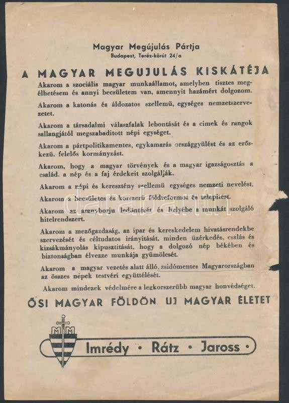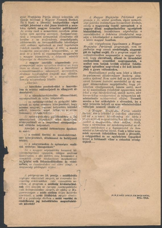 cca 1940 A Magyar Megújulás Pártjának 2 db röplapja