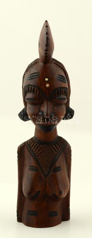 Faragott afrikai női figura, jelzés nélkül, m:33 cm