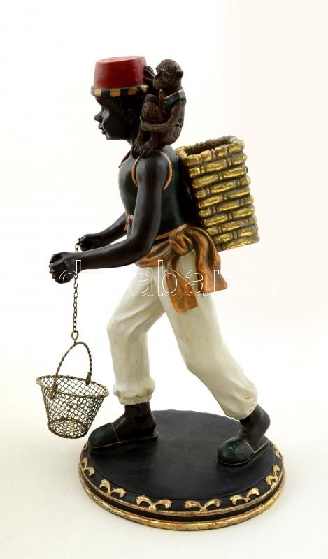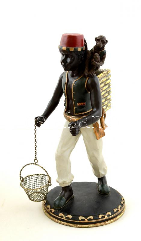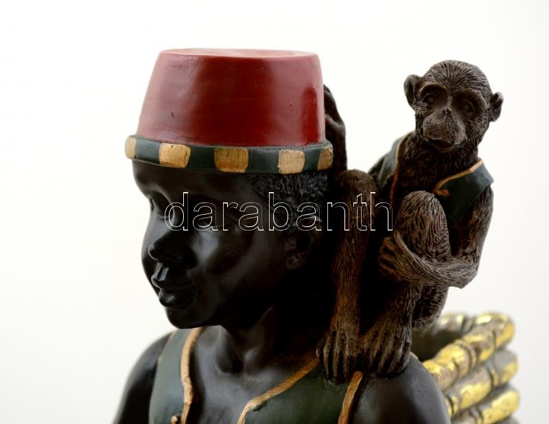 Jelzés nélkül: Londiner a majommal. Festett műanyag, apró hibákkal, m:35 cm