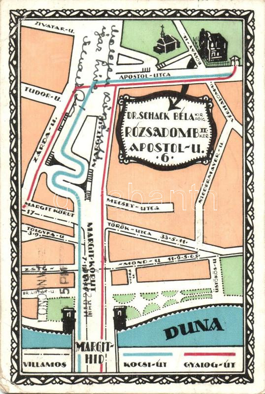 https://www.darabanth.com/en/283-Online-auction/283.0/Postcards/Hungary~200005/Budapest-II-Apostol-utca-6-Dr-Schack-Bela-kiralyi-foigazgato-villaja-terkep-EK~II1471116