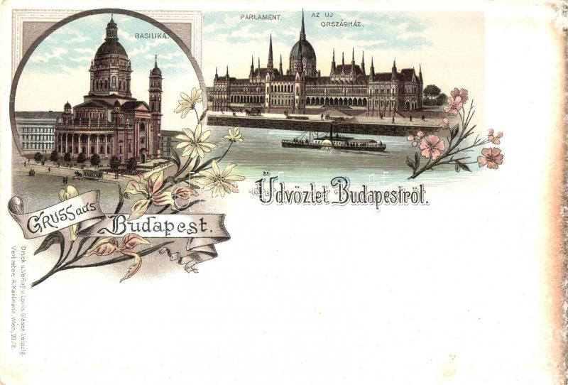 Budapest, Új Országház, Bazilika, Louis Glaser floral, litho (EK)