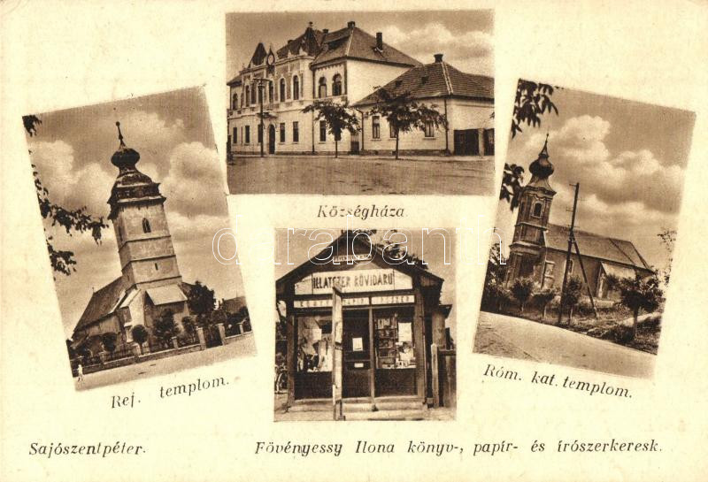 Sajószentpéter, Községháza, Fövényessy Ilona könyvkereskedése és saját...