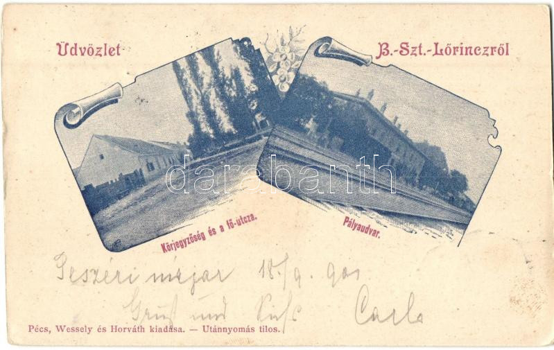 Szentlőrinc, Baranyaszentlőrinc; vasútállomás, Közjegyzőség és Fő utca. Wessely és Horváth kiadása