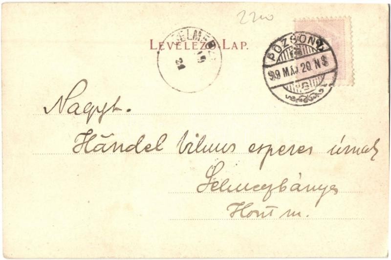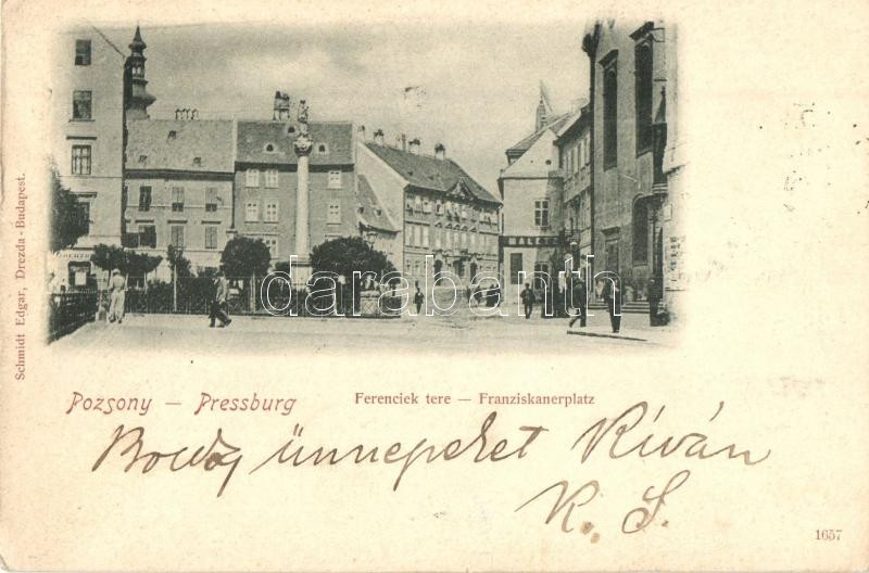 1899 Pozsony, Pressburg, Bratislava; Ferenciek tere, kiadja Schmidt Ed...