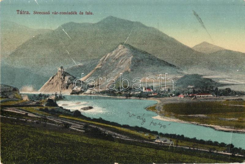 Sztrecsnó, Sztrecsény, Strecno; várrom, falu, folyó, kiadja Feitzinger...