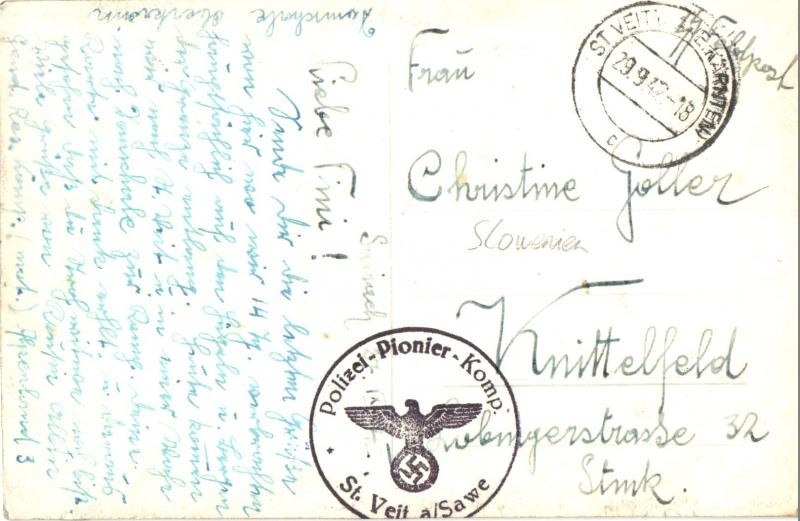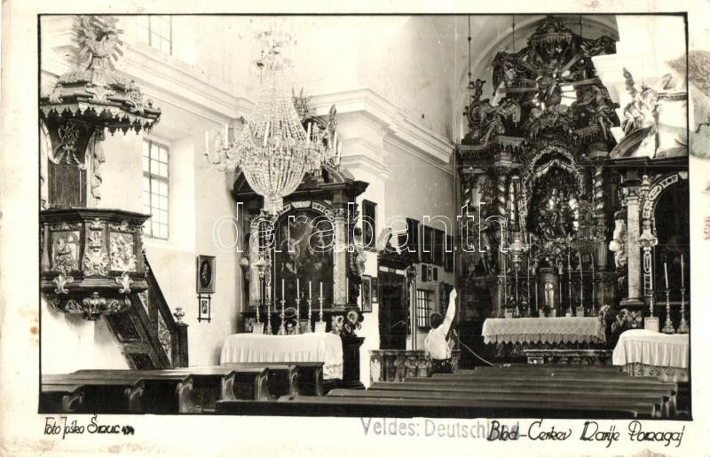 Description: Bled, Veldes; Cerkev Rarije Poragaj / Church of the Virgin Mary, interior, 'Polizei-Pionier-Komp. St. Veit a/Sawe' stamp on the backside, SS feldpost (fl)