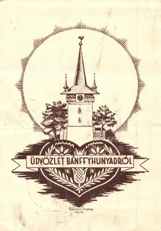 Bánffyhunyad, Huedin; Református templom / Calvinist church, 'Bánffyhunyad visszatért' So. Stpl. s: Fábián Imre (fa)