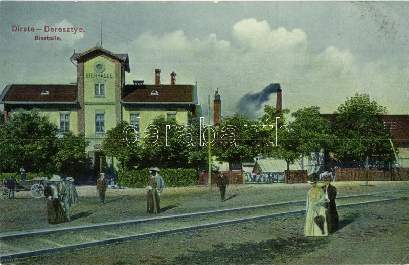 Derestye, Darste; Bierhalle / Czell sörgyár sörcsarnoka vasúti sínekkel, H. Zeldner kiadása / Brewery and beer hall with railways (EK)