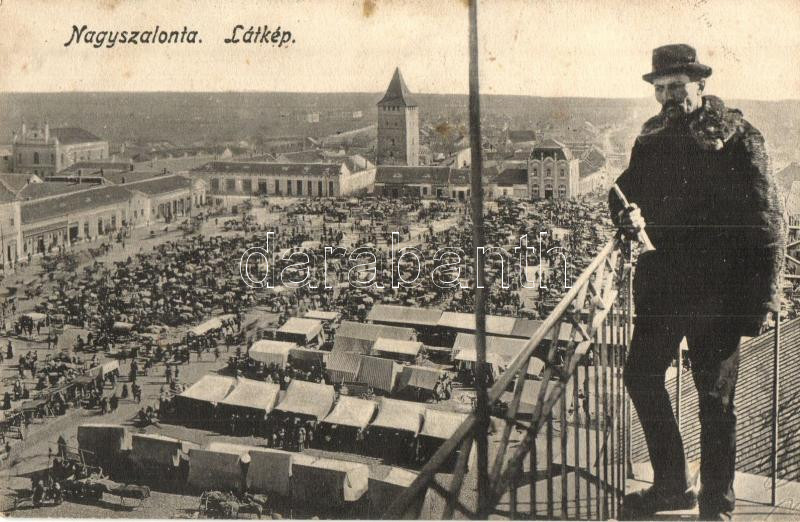 Nagyszalonta, Salonta; Látkép, piac, zsinagóga ,erkély kürtössel / general view, market place, synagogue, balcony with bugler