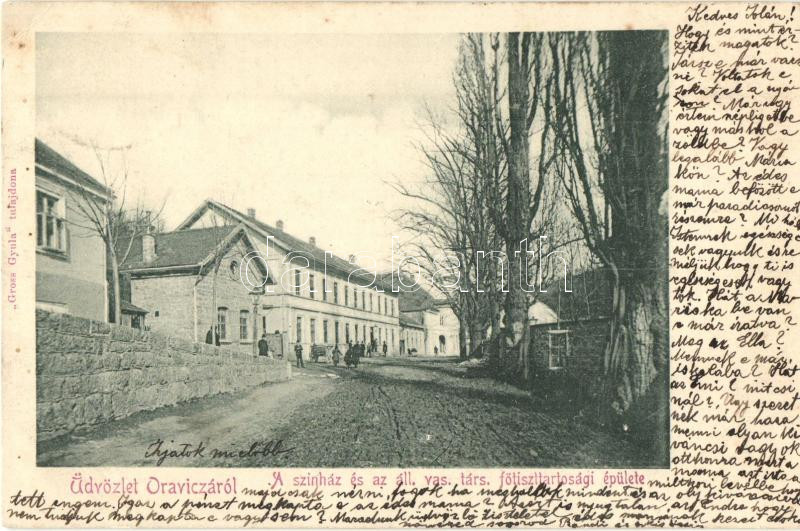 Oravica, Oravita; színház, állami vasúttársaság főtiszttartósági épülete, Gross Gyula kiadása / theater, railway company's building (EK)