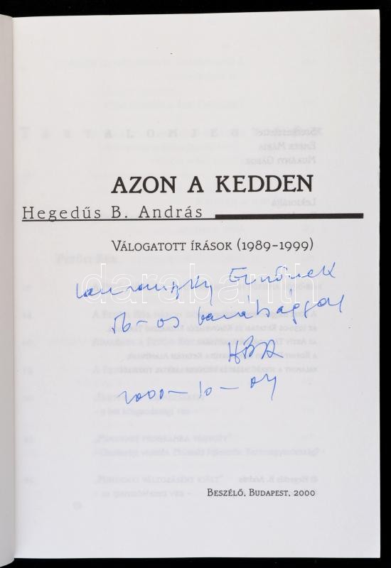 Hegedűs B. András: Azon a kedden. Bp., 2000. Beszélő. Laurenszky Jenő ...