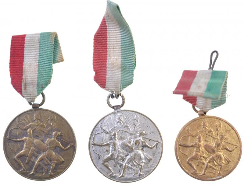 ~1930-1940. "Levente verseny" 3db sportérem szalaggal, aranyozott, ezü...