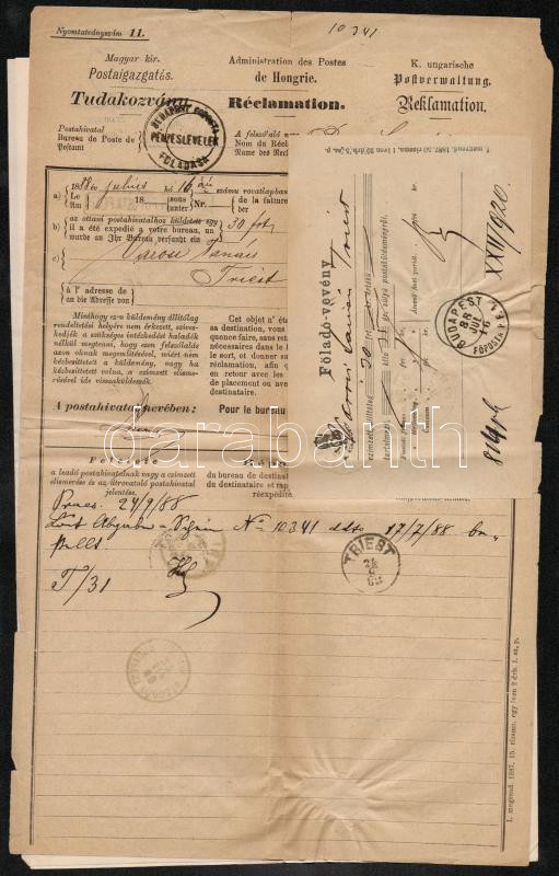 https://www.darabanth.com/en/284-Online-auction/284.0/Other-collectibles/Documents~16/1888-Magyar-Kiralyi-Postaigazgatas-altal-kiallitott-tudakozvany-eltunt-kuldemennyel-kapcsol~II1475702