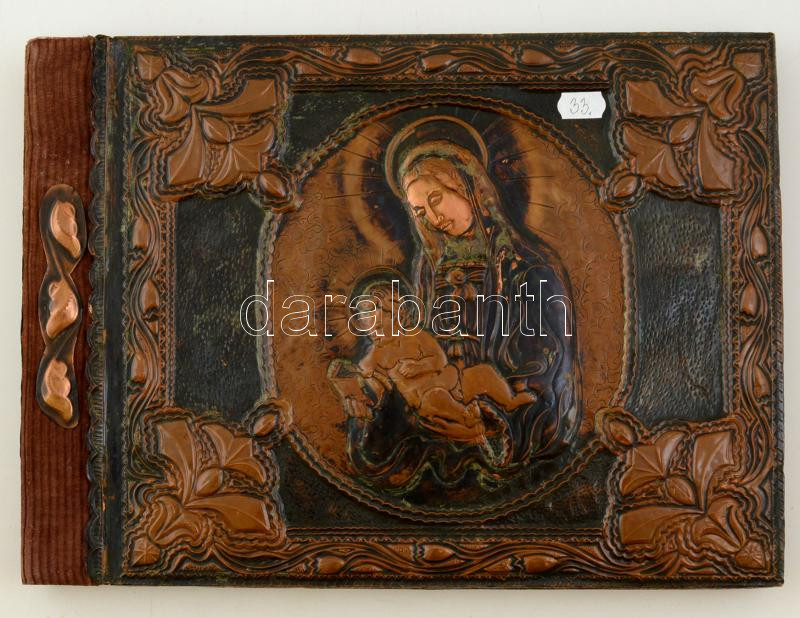 Díszalbum, Mária kis Jézussal, réz lemez borítással, 25×34 cm