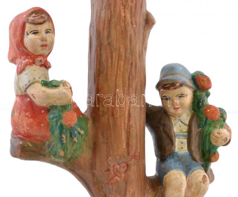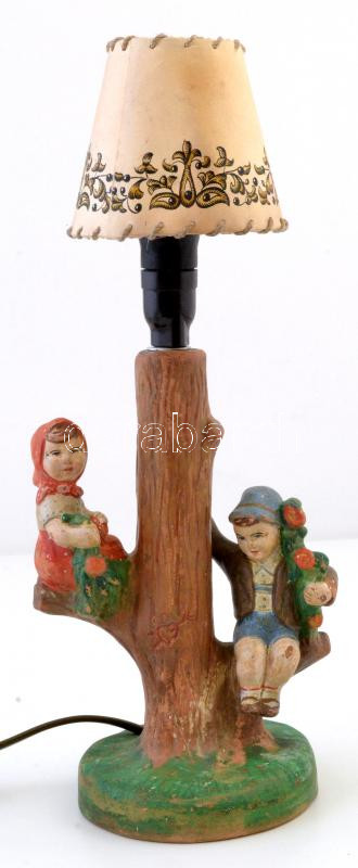 Retro asztali lámpa gyerek figurákkal, kézzel festett kerámia, apró lepattanásokkal, működik, m:36 cm