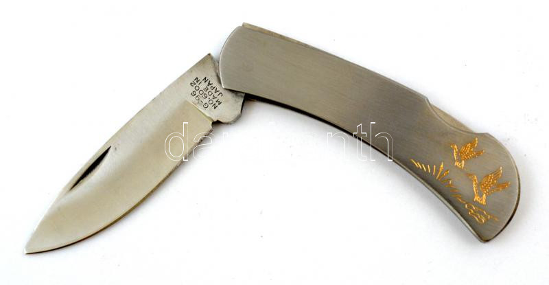 Rozsdamentes japán vadászkés, díszítéssel, jó állapotban, h: 15,5 cm