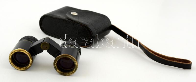 Szovjet fém színházi látcső, bőr tokban, jó állapotban