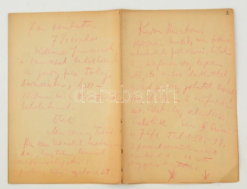 Marconnay Tibor (1896-1970) író, újságíró levele