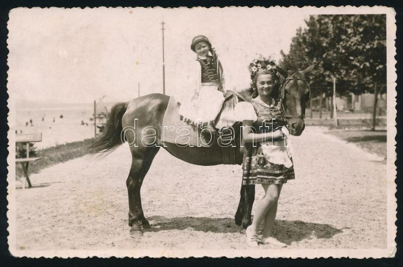 1935 Balatonboglár, Pónilovon a parton, fotólap Libschütz József fényk...