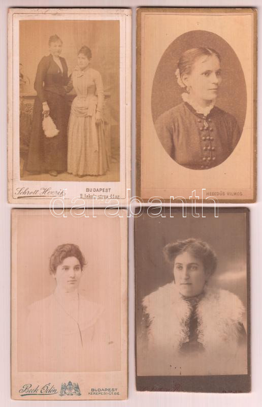 cca 1860-1900 10 db nőket ábrázoló régi keményhátú fotó, vizitkártya
