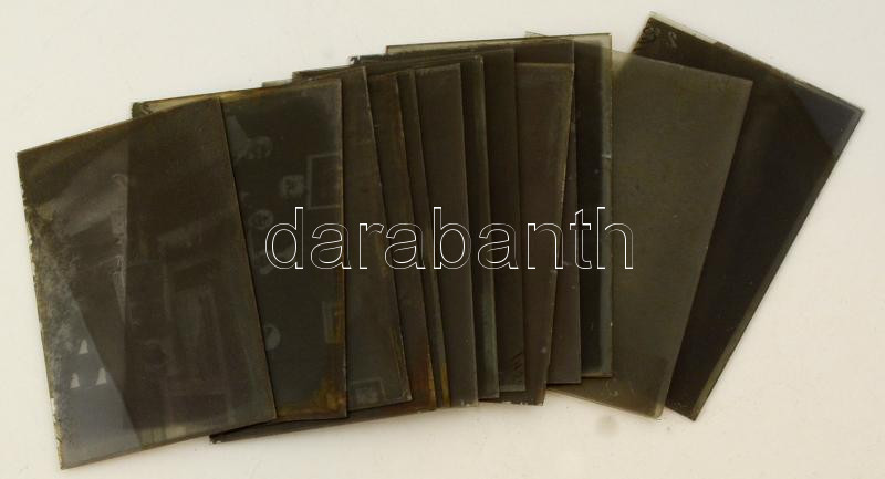 cca 1920 Rappensberger Andor m. kir. főerdőtanácsos 13 db vintage üveglemez negatívja változatos témákról a hagyatékából, 10x15 cm