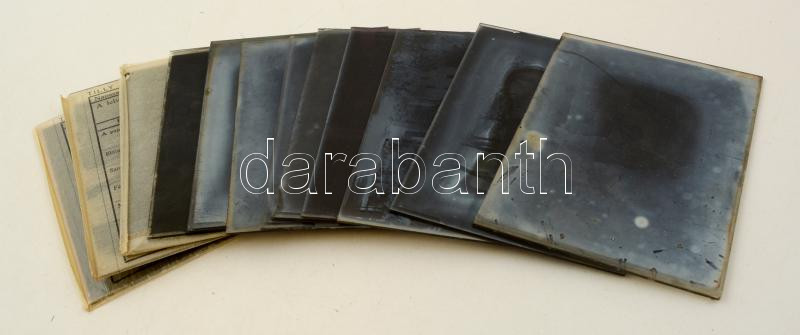 cca 1930 Merényi Andor (?-1940) banktisztviselő 13 db vintage üveglemez negatívja változatos témákról, 9x12 cm