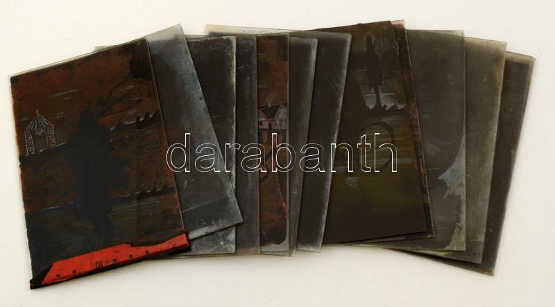 cca 1940 Csongrád, Hajdú János külvárosi fényképész 13 db vintage üveglemez negatívja különféle témákról a hagyatékából, 9x14 cm