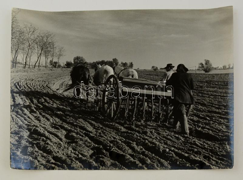 cca 1959 Dezső Pál: Őszi vetés, feliratozott vintage fotóművészeti alk...