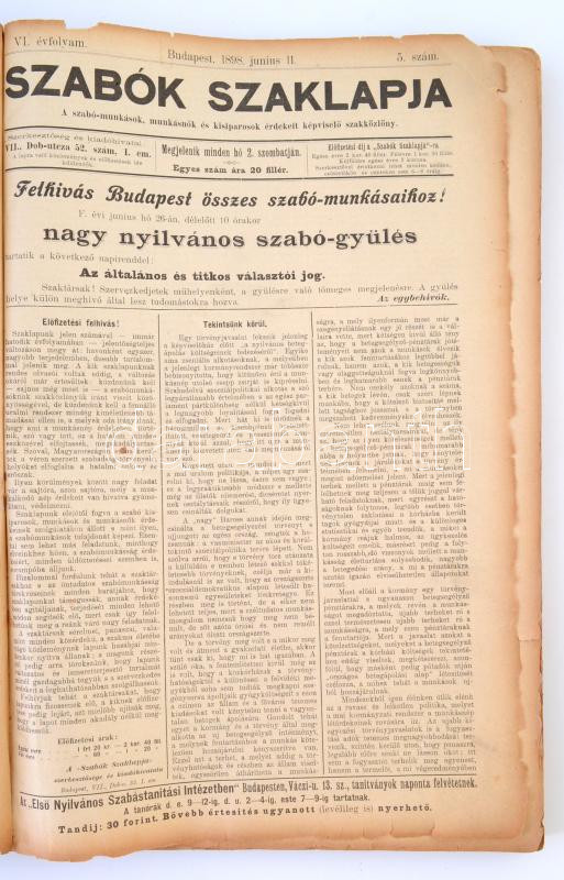 1898-1902 a Szabók szaklapja számos lapszáma egybekötve, érdekes írásokkal, kötése elválik