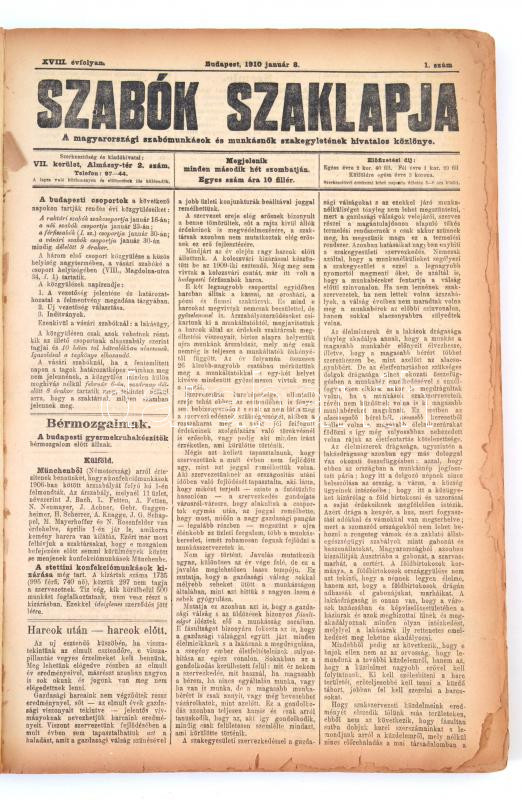 1910 a Szabók szaklapja számos lapszáma egybekötve, érdekes írásokkal