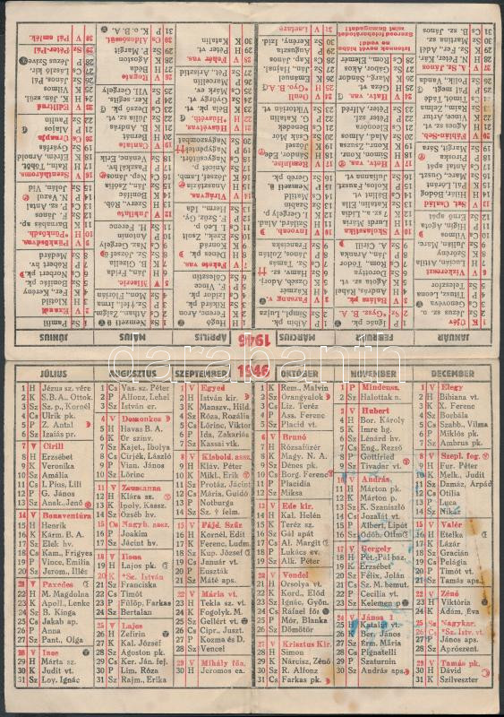 1946 Kihajtható naptár hátoldalán rövid írásokkal(pl. Látogatás Lipták... https://www.darabanth.com/en/284-Online-auction/284.0/Other-collectibles/Printed-Materials~27/1946-Kihajthato-naptar-hatoldalan-rovid-irasokkalpl-Latogatas-Liptak-bacsi-gepesitett~II1474573
