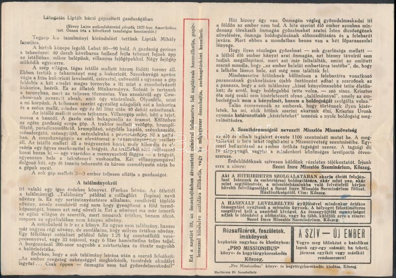 Description: 1946 Kihajtható naptár hátoldalán rövid írásokkal(pl. Látogatás Lipták bácsi gépesített gazdaságában, A találmányokról, A Szentháromságról nevezett Missziós Miseszövetség)