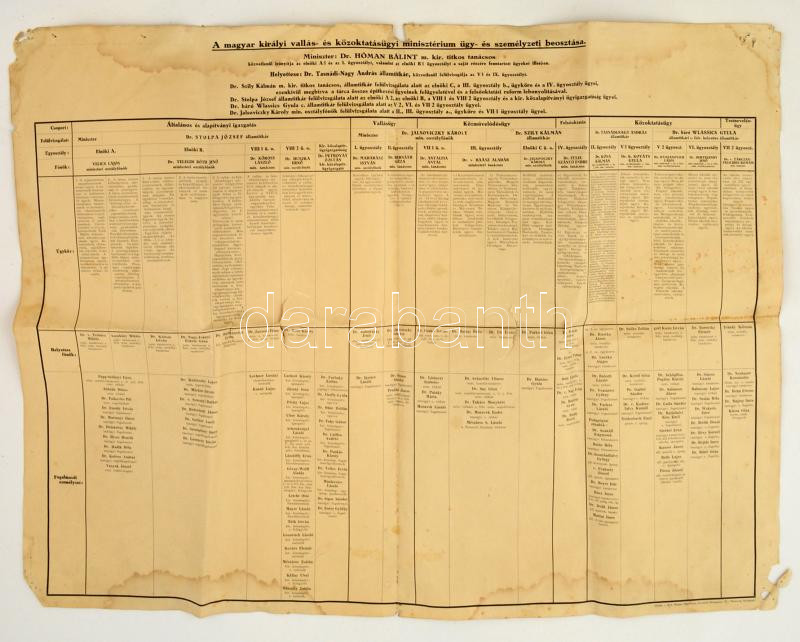 https://www.darabanth.com/en/284-Online-auction/284.0/Other-collectibles/Printed-Materials~27/cca-1940-M-kir-Vallasi-es-Kozoktatasugyi-Miniszterium-ugy-es-szemelyzeti-beosztasa-Nagy~II1477289