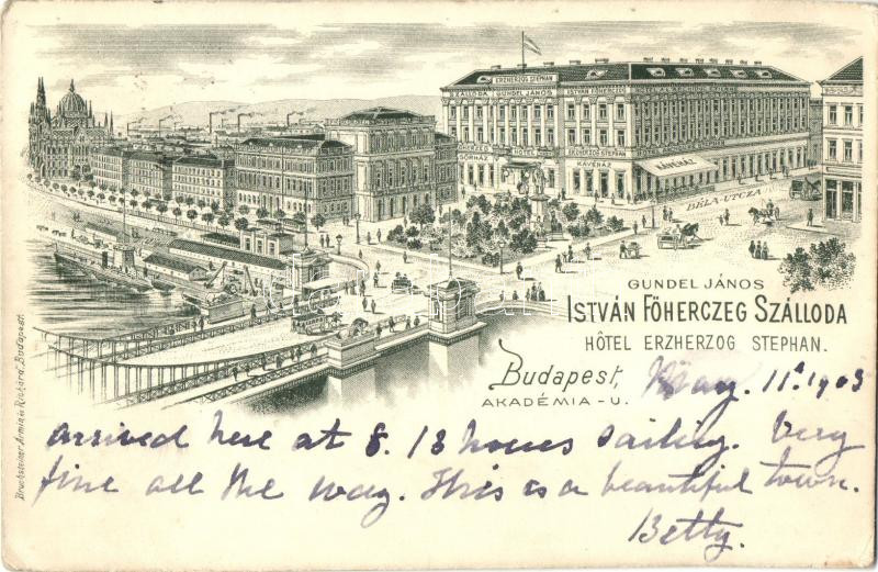 Budapest V. Gundel János István főherceg szállodája, Béla utca Akadémi...
