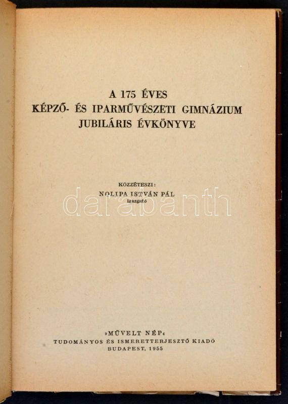 A 175 éves Képző és Iparművészeti Gimnázium jubiláris évkönyve. Bp., 1955. Művelt Nép. 70 p. Papírkötésben, jó állapotban