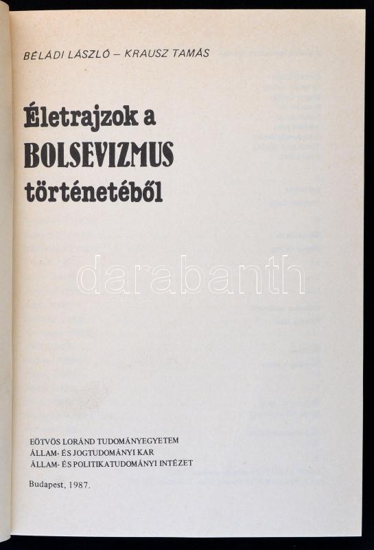 Béládi László, Krausz Tamás: Életrajzok a bolsevizmus történetéből. Bp... https://www.darabanth.com/en/285-Online-auction/285.0/Books/Books-History~100031/Beladi-Laszlo-Krausz-Tamas-Eletrajzok-a-bolsevizmus-tortenetebol-Bp-1987-ELTE-Allam~II1482636