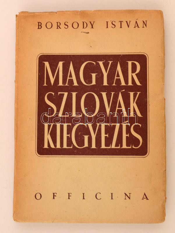 Borsody István: Magyar-szlovák kiegyezés. Budapest, é.n. (1945), Offic... https://www.darabanth.com/en/285-Online-auction/285.0/Books/Books-History~100031/Borsody-Istvan-Magyar-szlovak-kiegyezes-Budapest-en-1945-Officina-Kiadoi-papirboritC3~II1441310