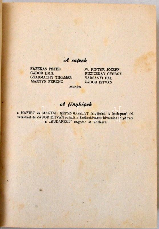 Gáspár Sándor, Zsadányi Oszkár (szerk.): Újjáépítő Magyarok. Az országépítés három esztendeje. Budapest, én., Kossuth Irodalmi és Könyvkiadó Vállalat, 710 p. Kiadói aranyozott, illusztrált félvászon kötés. Fazekas Péter, Gádor Emil, Gyarmathy Tihamér, Martyn Ferenc, W. Pintér József, Ruzicskay György, Varsányi Pál, Zádor István rajzaival. A borítója foltos, kopott. A kötése sérült, laza.