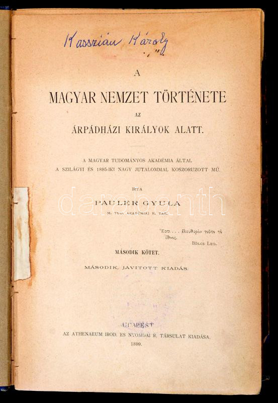 https://www.darabanth.com/en/285-Online-auction/285.0/Books/Books-History~100031/Pauler-Gyula-A-magyar-nemzet-tortenete-az-Arpadhazi-kiralyok-alatt-2-kot-Bp-1899-Athen~II1484911