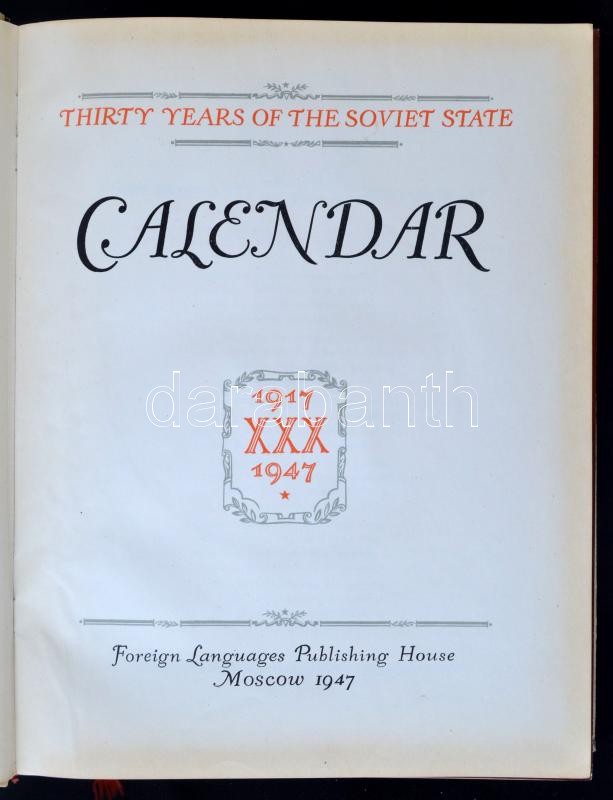 Description: Thirty Years of the Soviet State Calendar 1917-1947. Moscow, 1947, Foreign Languages Publishing House. Kiadói aranyozott félvászonkötésben, számos illusztrációval. / Illustrated cloth binding, gilt spine.