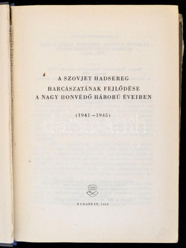 A Szovjet Hadsereg harcászatának fejlődése a nagy honvédő háború éveib... https://www.darabanth.com/en/285-Online-auction/285.0/Books/Books-Military~100032/A-Szovjet-Hadsereg-harcaszatanak-fejlodese-a-nagy-honvedo-haboru-eveiben-1941-1945-Szerk~II1494531