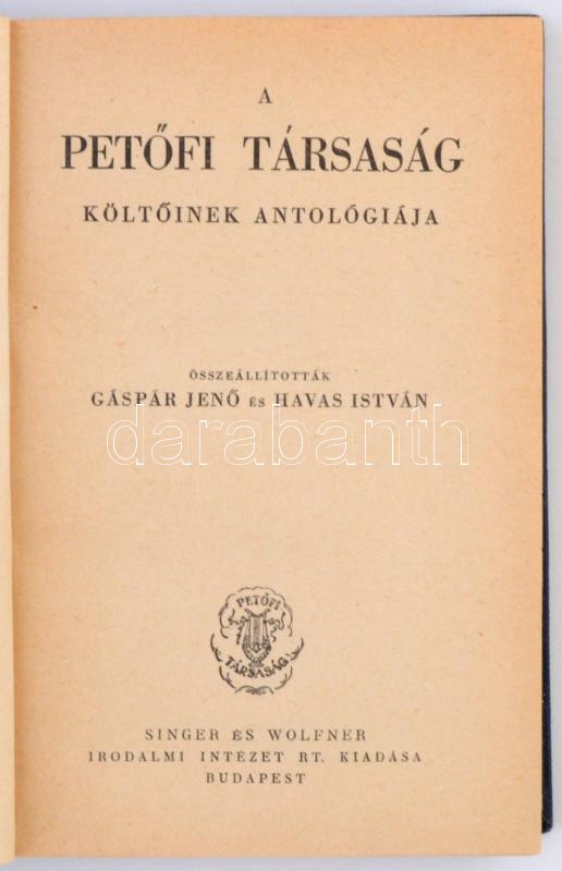 A Petőfi Társaság költőinek antológiája. Összeállították Gáspár Jenő é... https://www.darabanth.com/en/285-Online-auction/285.0/Books/Books-Other-rarities~100042/A-Petofi-Tarsasag-koltoinek-antologiaja-Osszeallitottak-Gaspar-Jeno-es-Havas-Istvan~II1447668