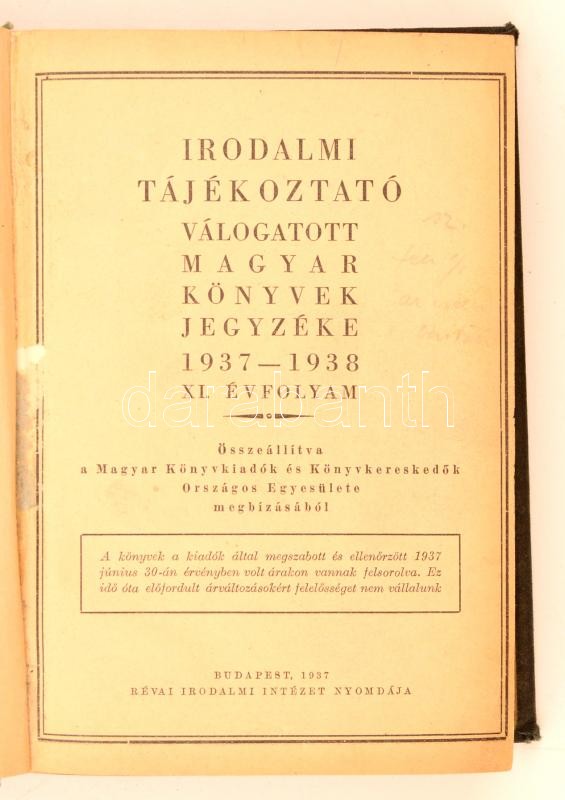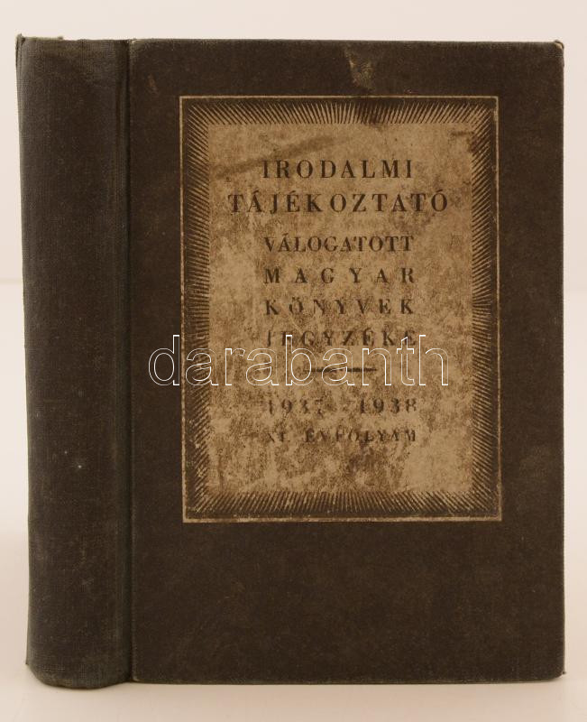 Irodalmi tájékoztató. Válogatott magyar könyvek jegyzéke 1937-1938. XI... https://www.darabanth.com/en/285-Online-auction/285.0/Books/Books-Other-rarities~100042/Irodalmi-tajekoztato-Valogatott-magyar-konyvek-jegyzeke-1937-1938-XI-evfolyam-OsszeallC3~II1428557