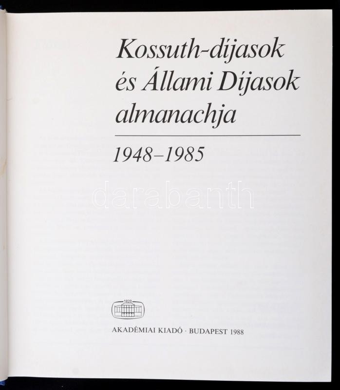 Kossuth-díjasok és Állami Díjasok almanachja 1948-1985. Szerk.: Darvas Pálné - Klement Tamás - Terjék József. Bp., 1988, Akadémiai. Kartonált papírkötésben, jó állapotban.