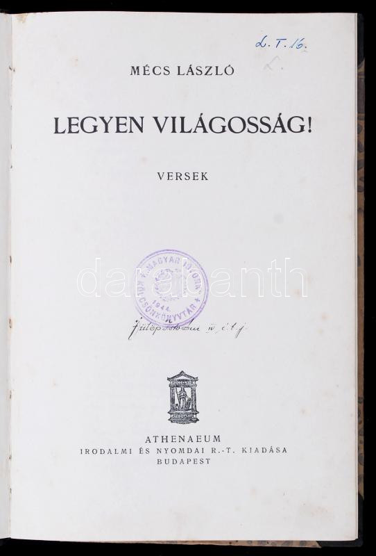https://www.darabanth.com/en/285-Online-auction/285.0/Books/Books-Other-rarities~100042/Mecs-Laszlo-Legyen-vilagossag-Versek-Elso-kiadas--Bp-e-n--Athenaeum-157-p-Korabel~II1281434
