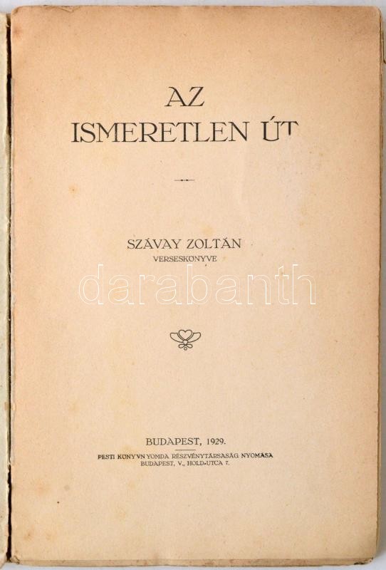 https://www.darabanth.com/en/285-Online-auction/285.0/Books/Books-Other-rarities~100042/Szavay-Zoltan-Az-ismeretlen-ut-Budapest-1929-Pesti-Konyvnyomda-Rt-114-p-Kiadoi-papirko~II1403836