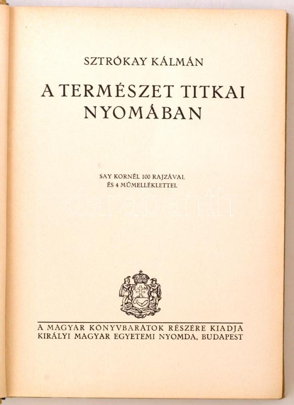 Sztrókay Kálmán: A természet titkai nyomában. Say Kornél 100 rajzával ... https://www.darabanth.com/en/285-Online-auction/285.0/Books/Books-Science-and-technology~100037/Sztrokay-Kalman-A-termeszet-titkai-nyomaban-Say-Kornel-100-rajzaval-es-4-mumelleklettel~II1420825