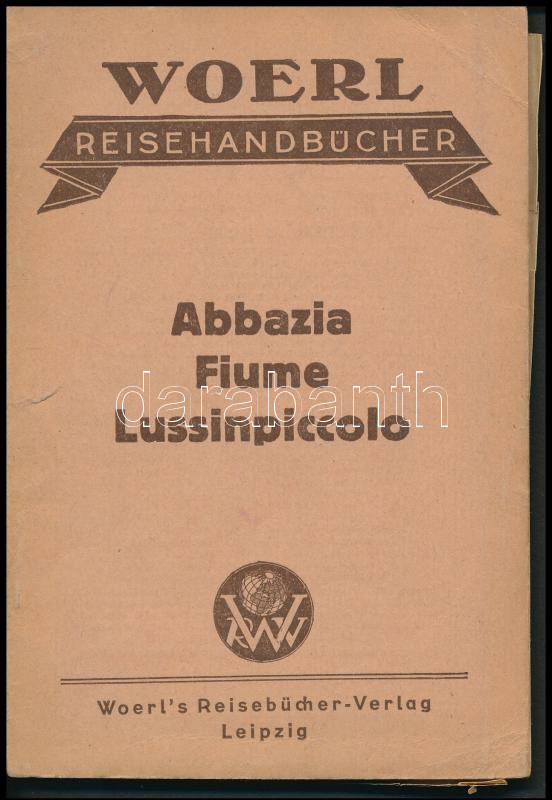 Illustrierter führer von Abbazia, Fiume, Lussinpiccolo. Woerl's Reisehandbücher. Leipzig, é.n., Woerl's Reisebücher-Verlag. 8. kiadás. Kiadói papírkötés, picit szakadt gerinccel, fekete-fehér képekkel, és három kihajtható térképpel, német nyelven./ Paperbinding, in german language, a little bit raunchy.