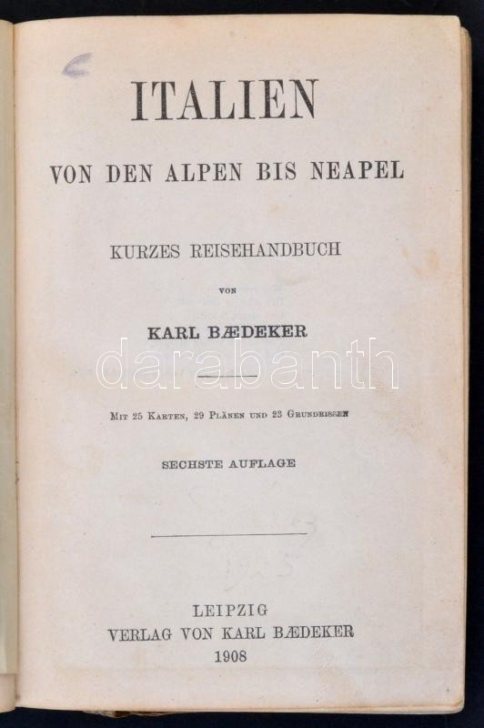 Karl Baedeker: Italien von den Alpen bis Neapel. Kurzes Reisehandbuch.... https://www.darabanth.com/en/285-Online-auction/285.0/Books/~100028/Karl-Baedeker-Italien-von-den-Alpen-bis-Neapel-Kurzes-Reisehandbuch-Leipzig-1908-Verlag-von-Kar~II1465172